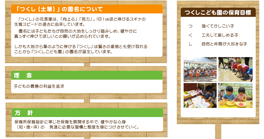 社会福祉法人 育守福祉会 つくしこども園は下記の「保育理念・方針・目標」をもとに、安心・安全でこどもたちの笑顔があふれ、保護者の方々や地域に愛され、信頼される認定こども園を目指していきます。